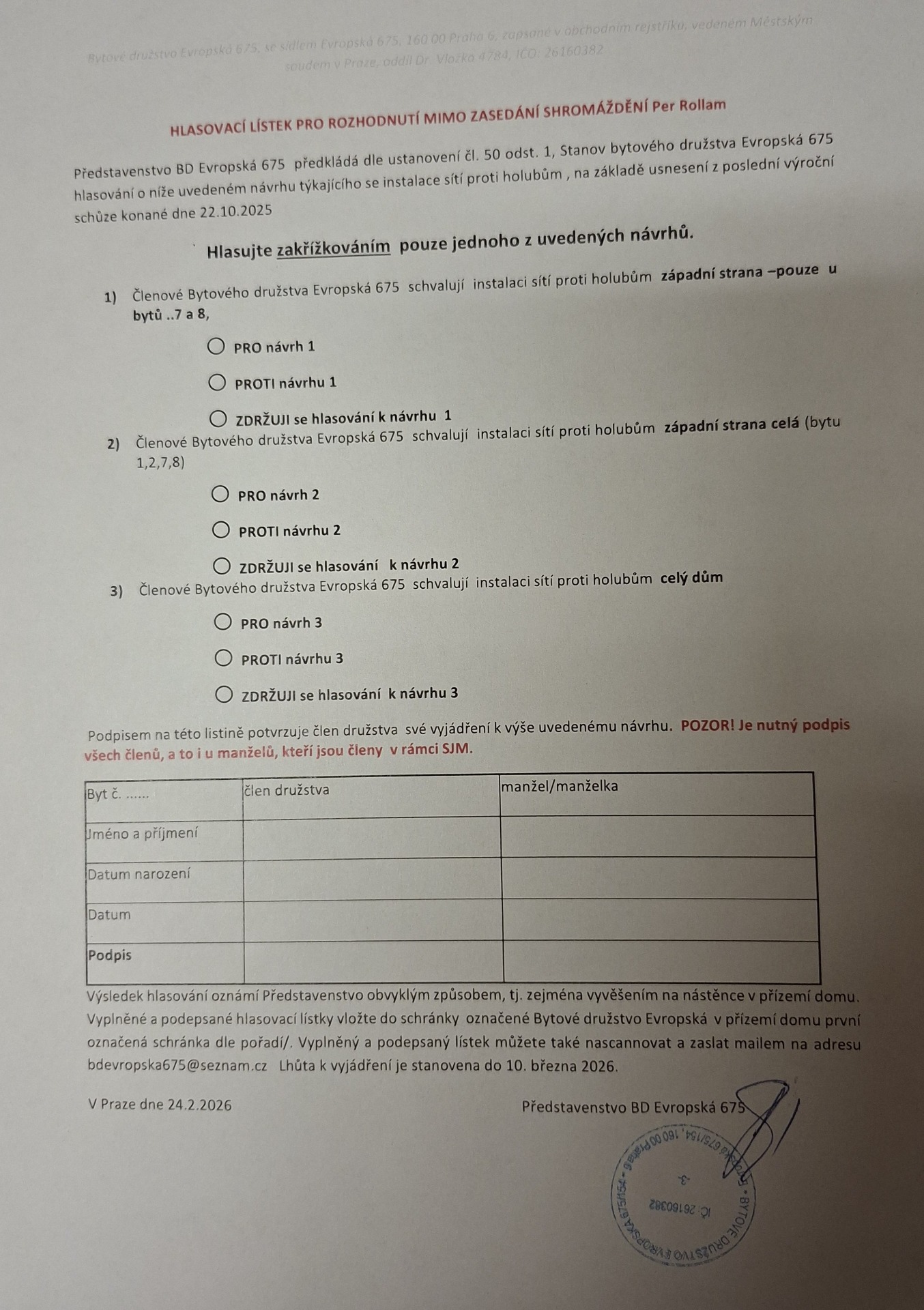Plná moc na výroční členskou schůzi BD Evropská 675